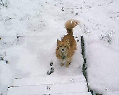 Since I already responded to Clint's thread with a pic I had posted before, here's a different one of the Luckster begging to come in out of the snow (he freaks everytime it happens, like he's never seen it before...)