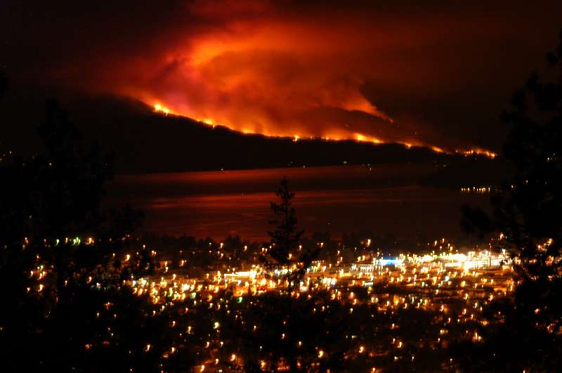 “KELOWNA, British Columbia (Reuters) - An estimated 30,000 people found themselves exiled from their homes in Kelowna, British Columbia, on Saturday by a wildfire so hot that at times it caused houses to explode….Emergency officials ordered 20,000 people to flee with only a few minutes warning on Friday evening as the forest fire began to "crown" -- …..Residents have been warned to stay out of forests and off wilderness roads and campsites in the southern half of the province, which is Canada's third largest and roughly the size of France and Germany combined.”