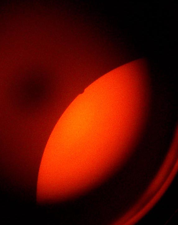 Sorry some of us didn’t post something up earlier. There’s a lot of neat and cheap ways to observe solar events safely. About the simplest is to pick up a No.12 welding lens at any welding supply or auto parts store. You’ll be able to use it for the next transit of Venus in 2012 if you’re at Sharni’s house.  (There are other events coming up in the next few years too.)