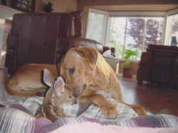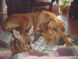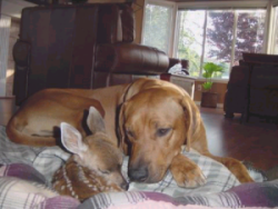 That is so sweet. A lady my mom used to work with many years ago had a doberman, who had just given birth, that adopted a motherless fawn. I would never have believed it, if I hadn't seen the pictures of the doberman nursing the fawn! Humans should be so tolerant of others.