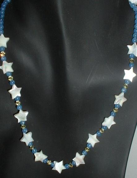 I am trying to figure out what this stone is...the light blue one. It could be man made or it could be natural. I've checked all my fave beading supply places. any one have a clue???