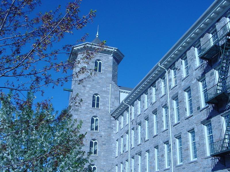 You bet there are floor level double doors under that beam. A pair on each of the five levels. The doors are solid mahogany...painted green on the outside.  And the beam was used all day every day from 1864 to 1985, when the mill moved south in search of a more affordable environment.