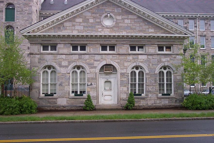 Here's a view from the front; the doors are in the background. My office is behind the two windows to the right.