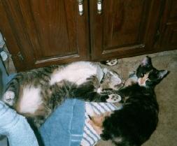 we (collectively my g/f and I)have 10 cats.... Mortimer Snerd, ShitTail Lothario, Arliss, Aubie, Ghostie, Izanagi (retired show siamese), Gillman, Zinj, Masq,Little Kitty Pizmo.