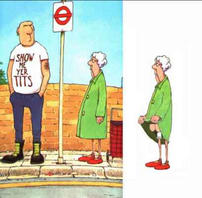 Horrified, she replies "Are you mad? My parents will see us!"