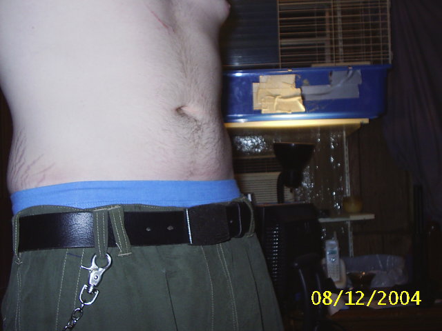 For example a good one is to lay flat on your back and raise your legs up in the air and try and keep them there and then spread your legs apart and leave them there then bring them together and lower them slowly, you should feel the lower of your abdomen being excercised i know it's a pain but if you are willing to train and routine it should pay off.