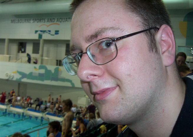 Well here's my face. It was taken a few days ago at a swimming competition, one of my swimmers got to my camera and snapped a shot of me! Cheeky devil!