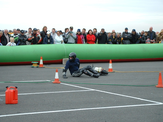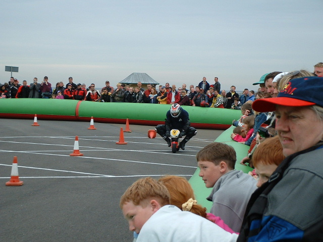 This is the 3rd place rider of the first race (Formula 1) coming up the lane to the pits - they get so close you can talk to them, if you want!