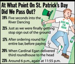 I'll be having ya know, you won’t be drinking up the last green pint by yourself, come the day of observance. You’ll be needin the second day to have your talk with the porcelain captain. LOL