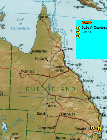 We do have Pixies in Queensland, but pleased to say none in Cape York Peninsula area to our knowledge. They are +10 hours GMT and +15 hours EST. Another updating link.