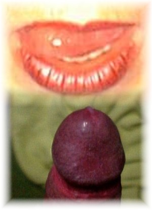 One hand slipped between his legs searching for the soft globes hidden in their own sac, she manipulated the balls squeezing them and rolling them through the fingers of her hand. All the while she was playing with his testicles her lips were getting closer to his stalk, suspended he could feel her hot breath on the end of his throbbing penis, the strap constricting the blood flow adding to the heightened sensations of desire. Her broad flat tongue uncurled from her scarlet lips, flickering momentarily against the plum coloured head of his cock before she slowly ran it's rough surface over the shaft's straining skin, as she licked lower she brought his balls in between her hungry lips, her teeth grazing the loose skin as she sucked on the orbs, his odour heavy in her nostrils, wiry hair tickling her cheeks. She pulled the leash again making the noose smaller, the strap tighter, his erection harder, his pain sharper, her control firmer, her pleasure deeper…..