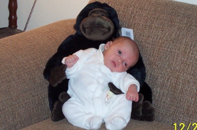 another piccy of the wee one...him & his granny's stuffed gorilla