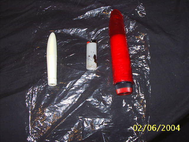 To give you a visual of what I'm working with here I got a pic of our small clitty vibe and then a fairly big red vibrator, I think it's 7-7 1/2". Then in the middle I've got a lighter cause it what the first thing I could find as a reference to size.